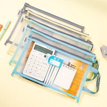 金得利 双层网纱学生科目分类袋 语数英综合 4个装 FB8779-4