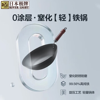 RIVER LIGHT日本极牌进口铁锅炒锅家用炒菜锅电磁炉燃气灶【健康无涂层】35cm