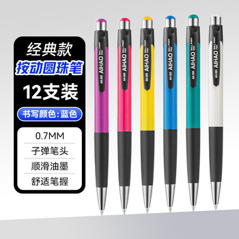 爱好(AIHAO)【开学必备】按动圆珠笔0.7mm中油笔子弹头原珠笔商务办公笔学生蓝色经典圆珠笔12支/盒 ah505