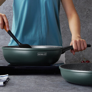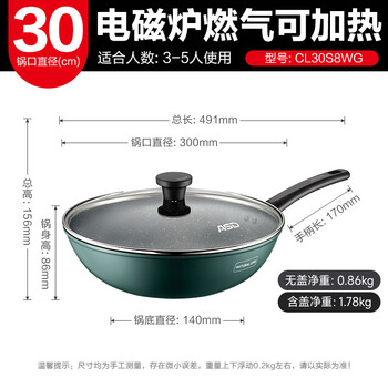 爱仕达(ASD)炒锅麦饭石色不粘炒菜锅平底大煎锅30cm燃气电磁炉通用CL30S8WG