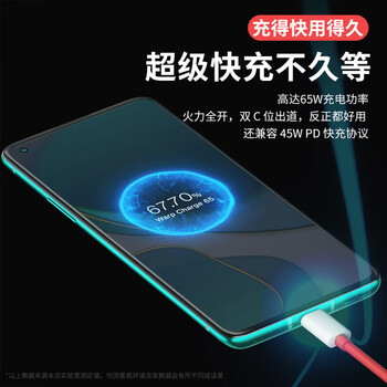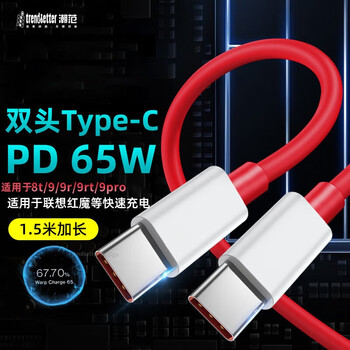 trendsetter适用于一加数据线65W闪充warp快充1+8t/9/9r/9rt/9pro手机充电线1.5米加长PD快充线联想小米通用