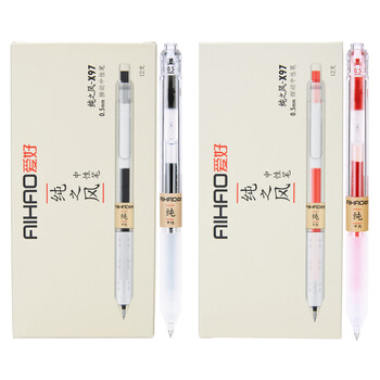 爱好(AIHAO)【开学必备】按动中性笔0.5mm子弹头黑色中性笔软胶笔握商务办公大容量签字笔 X97