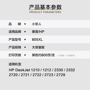 小京人适用惠普805墨盒可加墨惠普HP 2720 2700 2723 1212 2330 2332 2729 2722 1210 2721打印机墨盒Deskjet
