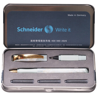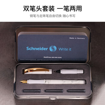施耐德(Schneider)钢笔宝珠笔直液式套装 双笔尖两用签字笔 男女生日礼物 云石系列-古兰丹白