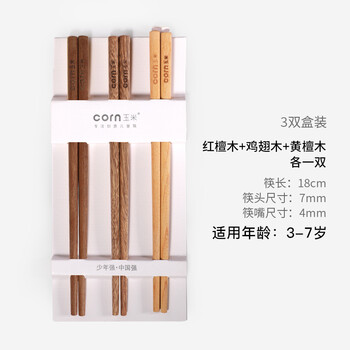 玉米(CORN)儿童筷子 家用实木无漆无蜡小孩短筷子幼儿园专用宝宝学习筷