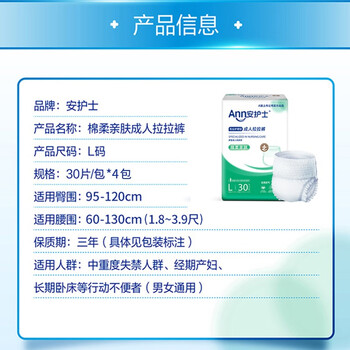安护士棉柔亲肤成人拉拉裤L120片臀围95-120cm内裤型纸尿裤老年人尿不湿
