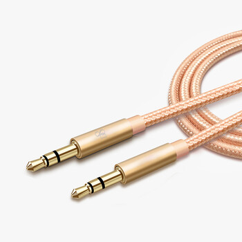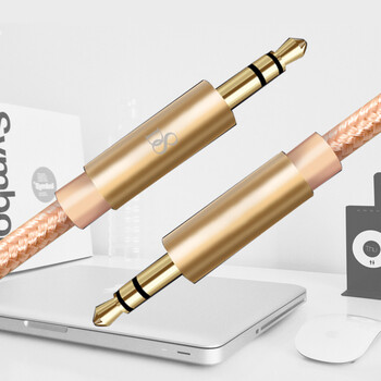 D8 音频线转接头音响蓝牙接收器4.1音频车载aux适配器转音箱耳机喇叭线适用手机平板功放/MP3/DVD编织 金色