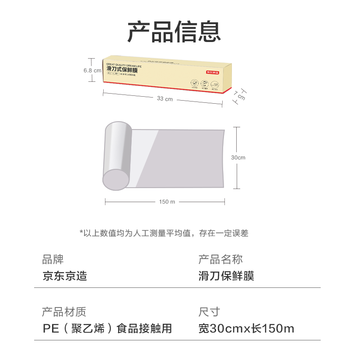 京东京造 保鲜膜食品级大号 耐高温滑刀式 送切割器【150米×30cm】