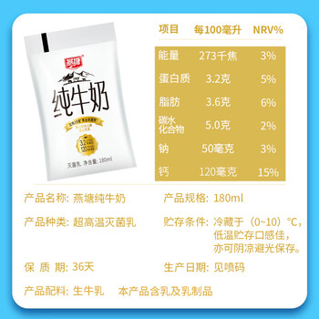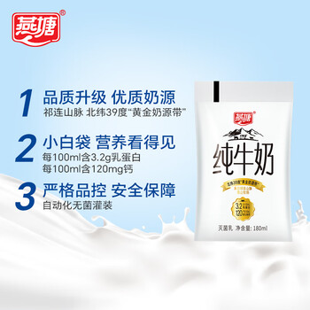 燕塘 小白低温纯牛奶180ml*16袋 3.2g乳蛋白 营养早餐 热门商品小白袋