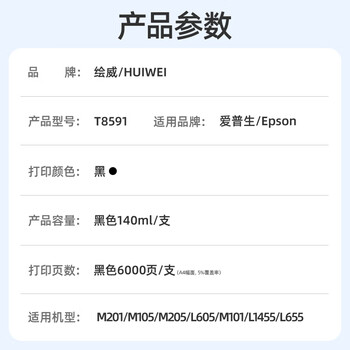 绘威859墨水 适用爱普生m105 m101 l1455 m205 l605 l655 m201 epson墨仓式打印机T8591墨水 黑色