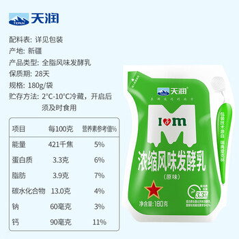 天润(TERUN)新疆特产 浓缩原味风味发酵乳低温酸奶礼盒装生鲜轻食180g*12袋