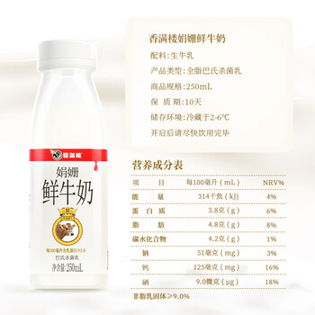 香满楼 娟姗鲜牛奶PET瓶 组装鲜奶 250mL*3