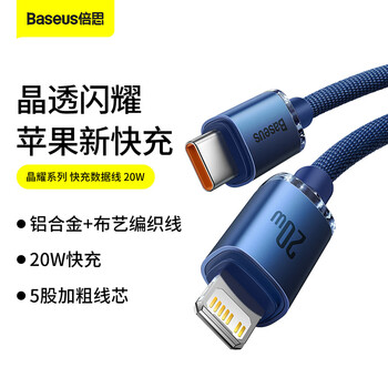 倍思 晶耀系列 快充数据线Type-C to iP 20W 1.2m 蓝色*1