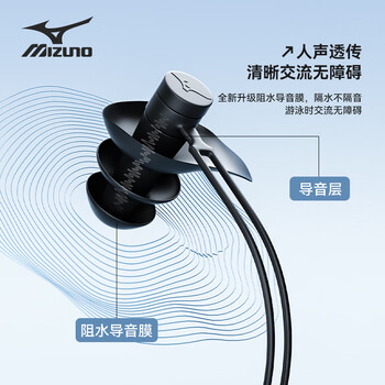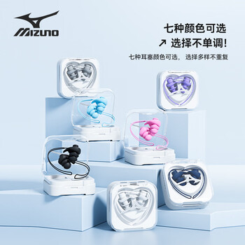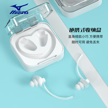 美津浓(MIZUNO)游泳耳塞防水中耳炎带挂绳防丢泳镜成人儿童硅胶堵耳装备N2001白