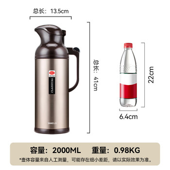 SIMELO保温壶不锈钢热水瓶玻璃内胆开水壶新北京暖壶2000ML金色