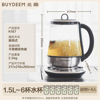 北鼎(Buydeem)【无胶水】养生壶中药壶多功能高端预约煮茶器商务全不锈钢进口玻璃智能壶烧水壶K187