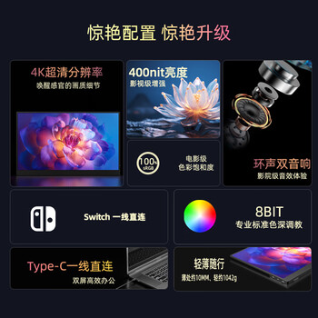 Eimio17.3英寸4K便携式显示器【100%sRGB色域】 IPS显示屏电脑笔记本副屏switch手机PS5扩展屏E17W