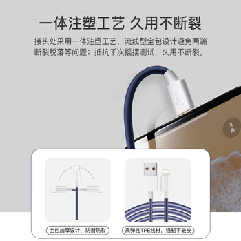 Zack扎克 苹果MFi认证 Type-C数据线通用iPhone12/11Pro/XSMax/XR/SE2/8p/7手机兼容充电线快充iPad平板 蓝白