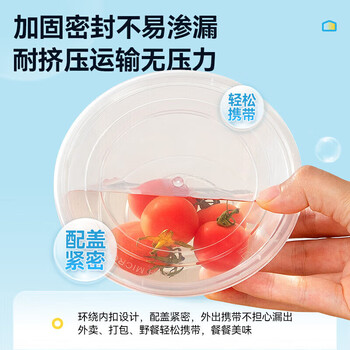 特美居一次性餐盒圆形餐碗塑料饭盒快餐盒带盖外卖打包盒汤碗750型50套