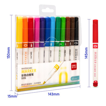 得力(deli)彩色可擦白板笔套装 儿童学生马克笔水彩笔涂鸦绘画办公会议家庭教学12色S531 儿童节礼物