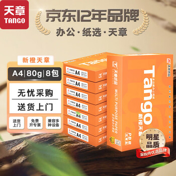 天章 (TANGO)新橙天章A4打印纸80g500张*8包【优选品质】 整箱4000张 双面打印复印纸 顺滑不卡纸高性价比