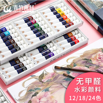 青竹画材24色12ml无甲醛水彩画颜料套装 儿童小学生绘画套装