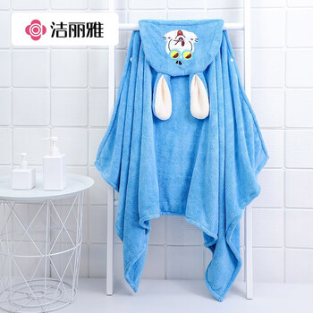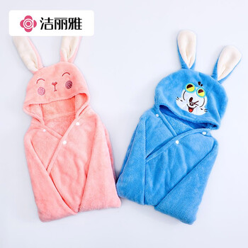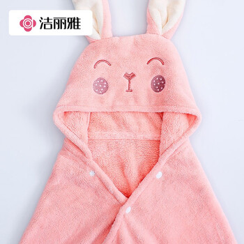 洁丽雅儿童浴袍珊瑚绒速干婴儿宝宝洗澡浴巾带帽加厚卡通粉中号140*70cm