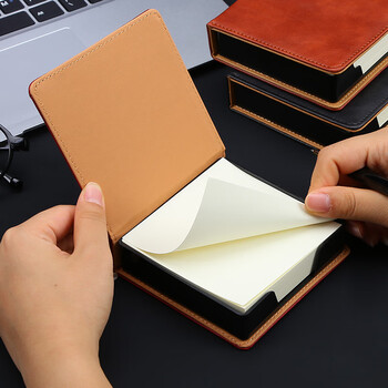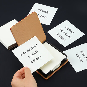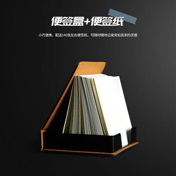 嘉然恒 商务皮质便签盒办公桌多功能收纳盒可撕便签纸小本子便利贴留言百事贴纸条 棕色