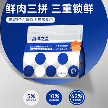 海洋之星冻干生骨肉三拼高鲜肉猫粮成猫幼猫干粮1.5kg (鸡肉配方)