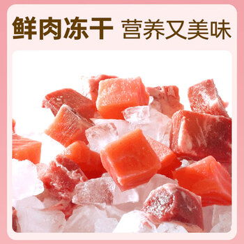 鲜鸡肉、鲜鸭肉、三文鱼、苜宿草颗粒、冻干鸡肉、奶酪、车前子、蛋粉、螺旋藻粉、蔓越莓粉