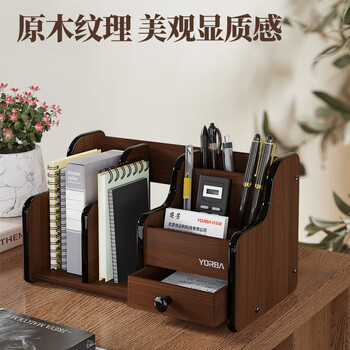 优必利 木质笔筒桌面收纳盒 组合办公桌整理架 桌面抽屉收纳座 6021A