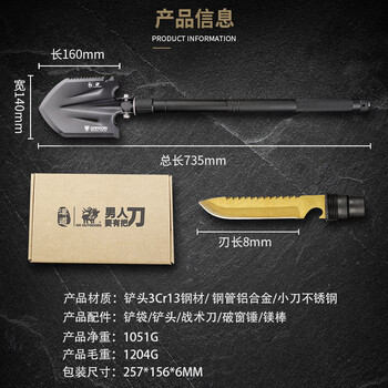 汉道多功能工兵铲兵工铲折叠铲子铁锹户外装备车载兵工铲蛟龙战术铲
