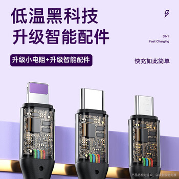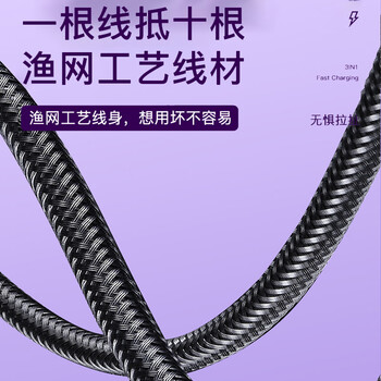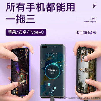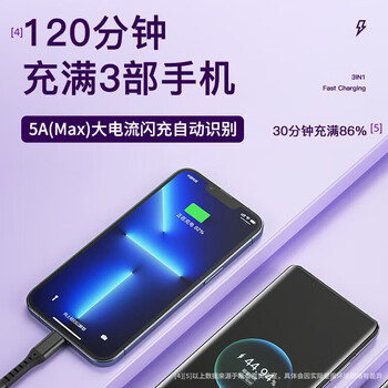 斯泰克 数据线三合一充电线一拖三5A快充线66W适用于华为mate70苹果Type-c器iPhone14/13/oppo/小米/vivo
