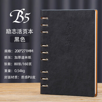 嘉然恒 活页本B5大号加厚笔记本本子创意励志封面商务办公文具记事本可拆卸替换内芯会议记录本可定制 黑色
