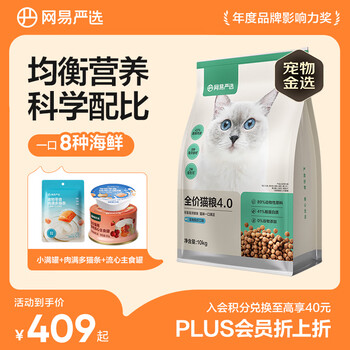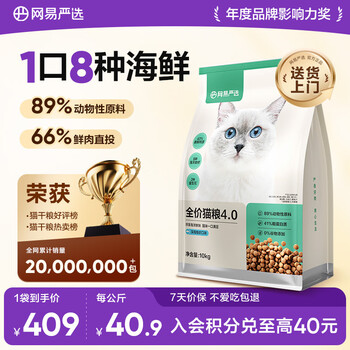 网易严选全价猫粮4.0 成幼猫三文鱼亮毛护肠胃深海鱼虾味10kg【宠物金选】
