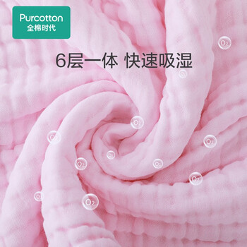 全棉时代 婴儿浴巾 6层水洗纱布浴巾 纯棉大毛巾礼盒装 粉色115*115cm