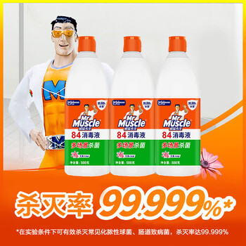 威猛先生(Mr Muscle) 甲流感防范 尼帕病毒防范 84消毒液 500g*3瓶 家用清洁 清新花香