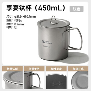 牧高笛(MOBIGARDEN)钛杯 户外露营野餐轻量便携可烧水钛杯水杯450ml NX20666039 钛色