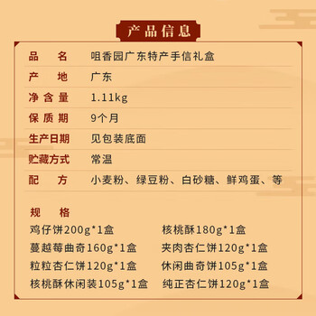 咀香园广东特产糕点1110g礼盒杏仁鸡仔饼糕点广州中式澳门伴手礼