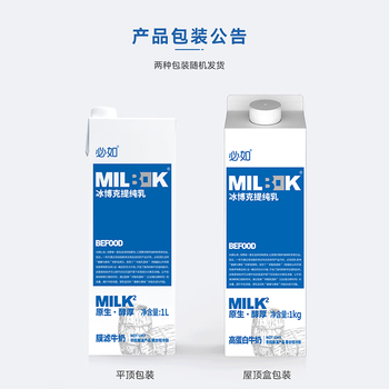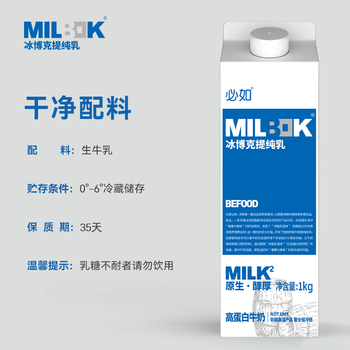 必如冰博克牛奶提纯乳低温牛奶1kg*1 芝士口感鲜奶6.2g优质蛋白鲜牛奶