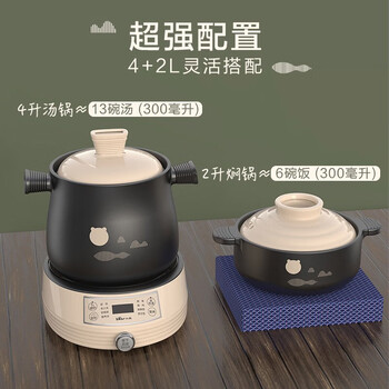 小熊分体式高温陶瓷双锅电砂锅电炖锅2L+4L DSG-B40J3