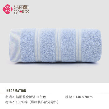 洁丽雅(Grace)纯棉浴巾成人儿童家用洗澡大毛巾A类全棉男女士吸水裹巾140×70cm
