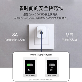 Zack扎克 苹果MFi认证 Type-C数据线通用iPhone12/11Pro/XSMax/XR/SE2/8p/7手机兼容充电线快充iPad平板 深灰