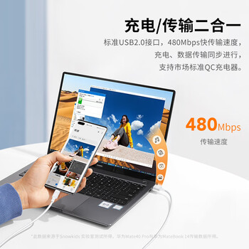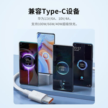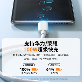 SnowkidsType-C数据线100W超级快充6A5A适用华为充电线Mate6040Pro/P50荣耀小米安卓手机充电器线车载USB-C