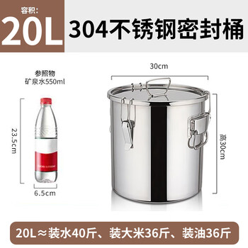 全适 304 加厚不锈钢密封桶 牛奶桶米桶茶叶桶装水米油储物桶 30*30