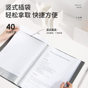 得力编码资料册A4/40页 彩色文件收纳册带页码活页插袋文件夹办公学生用品 极致灰NS191办公用品发票