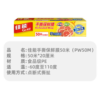 佳能 Glad 保鲜膜 手撕保鲜膜盒装50米x20厘米 PW50M