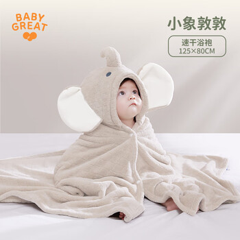 BABYGREAT婴儿浴巾儿童洗澡巾斗篷带帽子新生儿宝宝连帽包巾珊瑚绒吸水速干