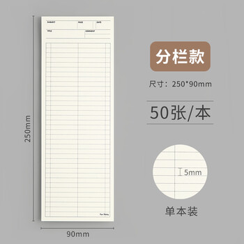 狮洛德 简约超长250*90mm便签纸可撕便条无粘性ins可爱韩版学生记重点用便签本留言本50页 分栏款