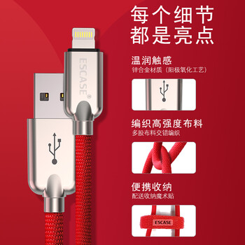 ESCASE 苹果数据线 快充编织线适用iPhone15promax/14/11/12/13手机4.1A充电器线 1米C11红